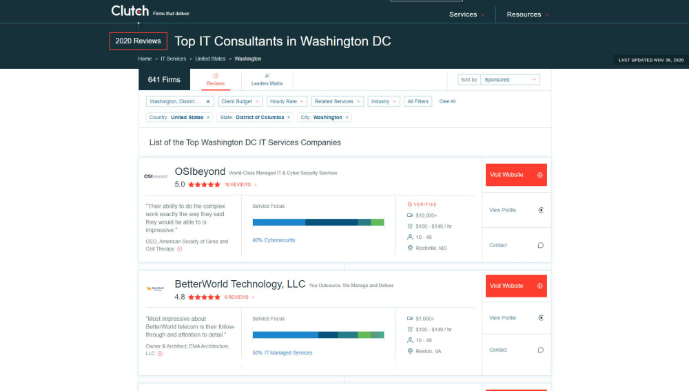 We are pleased with our recognition by Clutch as a top IT Services in Washington DC. BetterWorld Technology has made it into one of Clutch’s highest-rated firms in the area.